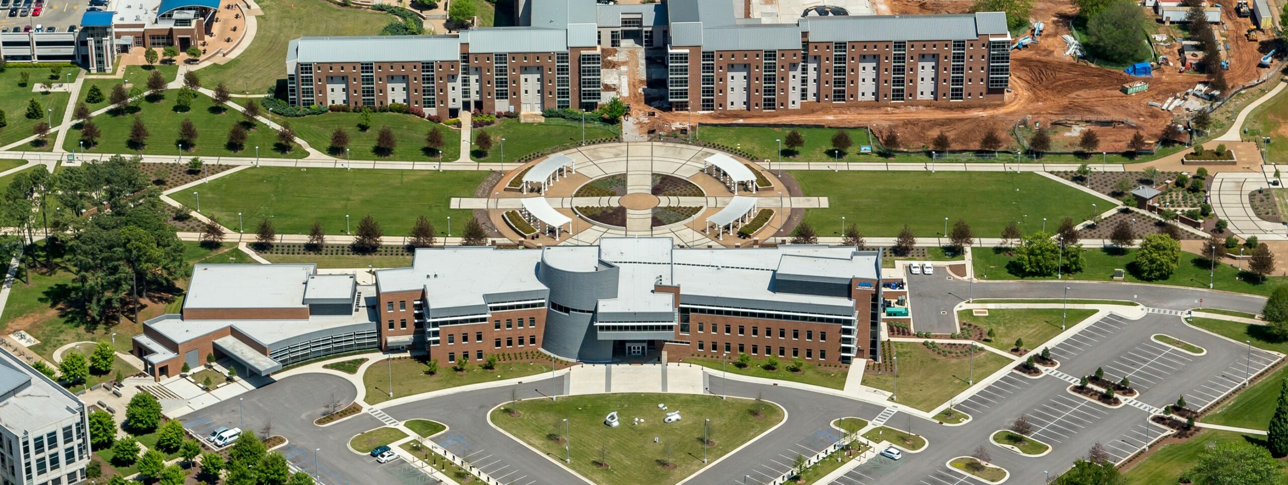 The building is organized on three levels. The first level contains student service oriented functions including Admissions, Financial Aid, Bursar and Registrar. The second-floor houses meeting spaces and offices for Graduate Studies, International Engagement and Diversity. Responding the university’s desire to make all departments visible from a single space, the first and second floors are united by a curved atrium with a glass wall fronting the campus greenway. The third-floor houses executive offices for the university administration.