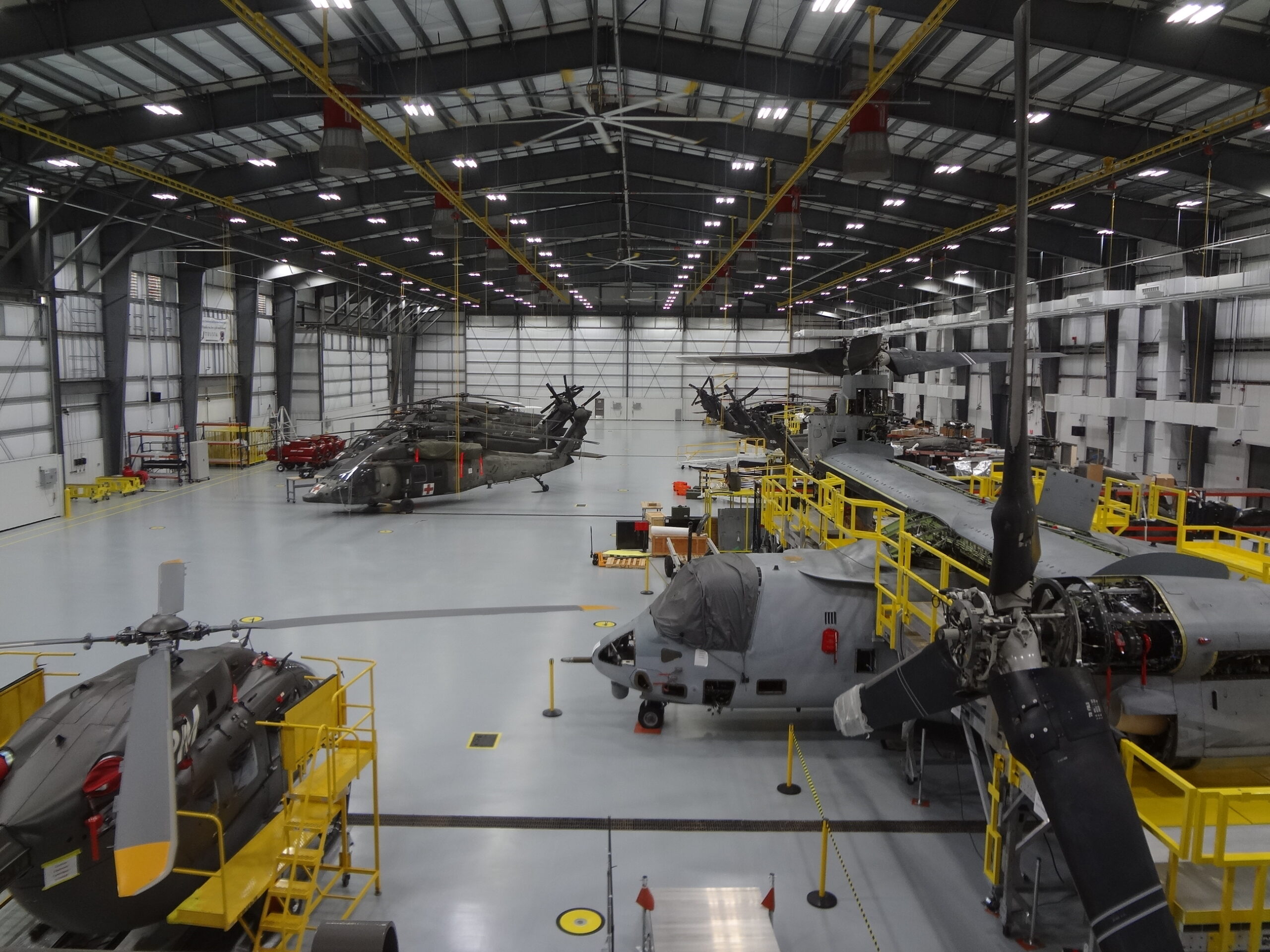 Create a maintenance facility and office building for a military contracting company that represents their company branding.
